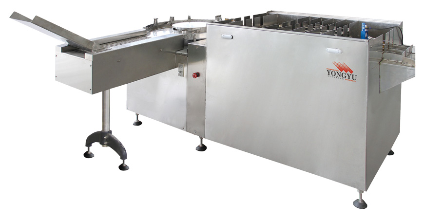 本機結構簡單,洗瓶過程中先用超聲(shēng)波“空化(huà)”原理對瓶子(zǐ)汙物進行剝離清洗,再使用純化水(shuǐ)、注射用水、壓(yā)縮(suō)空氣強力交替衝洗。本機產量大,操作簡單,維修方便,本機可單機也可(kě)聯(lián)線生產。