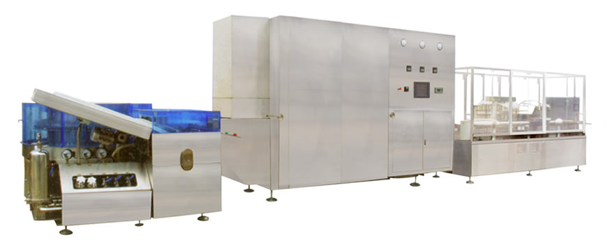 本機組符合“cGMP”要求(qiú),適用於安(ān)瓿的洗瓶、烘幹(gàn)滅菌及灌裝封口,由QCL型立式超聲波清洗機、MSH-B型熱風循環滅菌烘箱、AGF型自動(dòng)安瓿灌封(fēng)機組成聯動生產線。